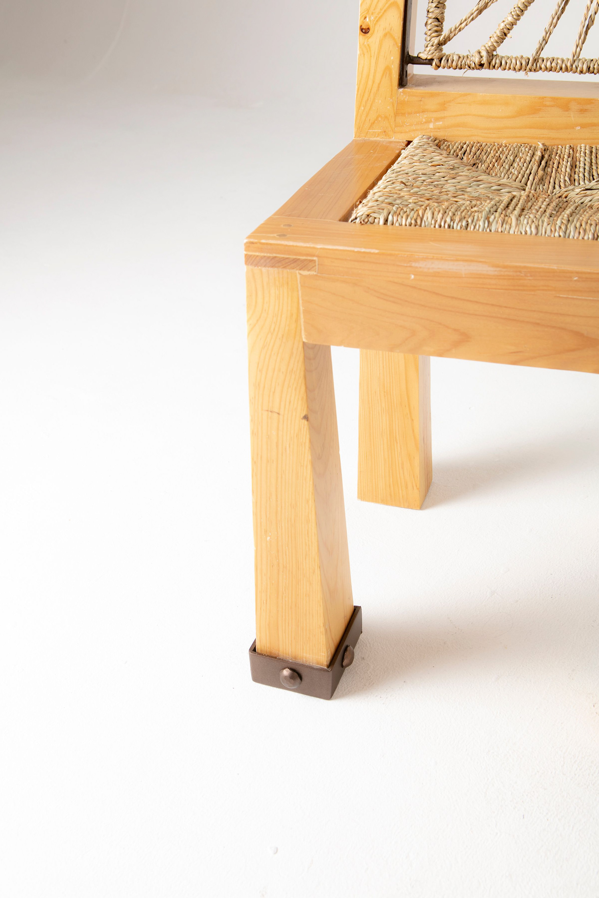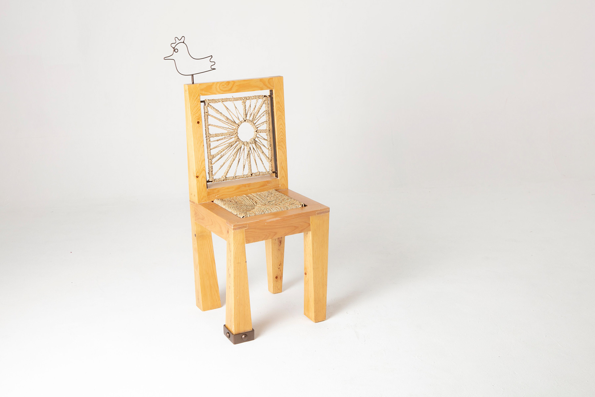 SOLANA (2022) Silla de madera de pino, tejido con cuerda torcida de alga marina, detalles en herrería esmaltada / 90x40x40cm