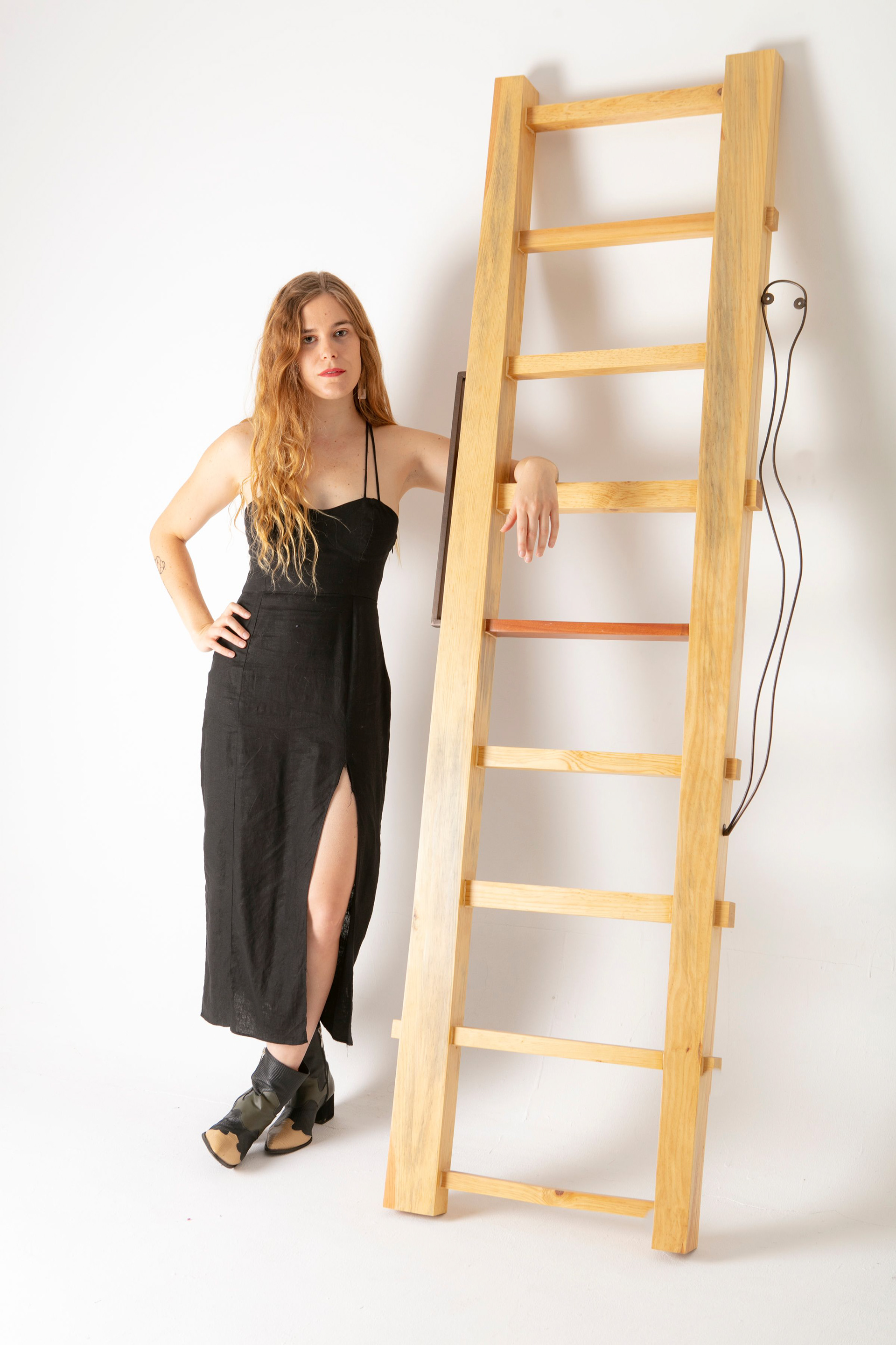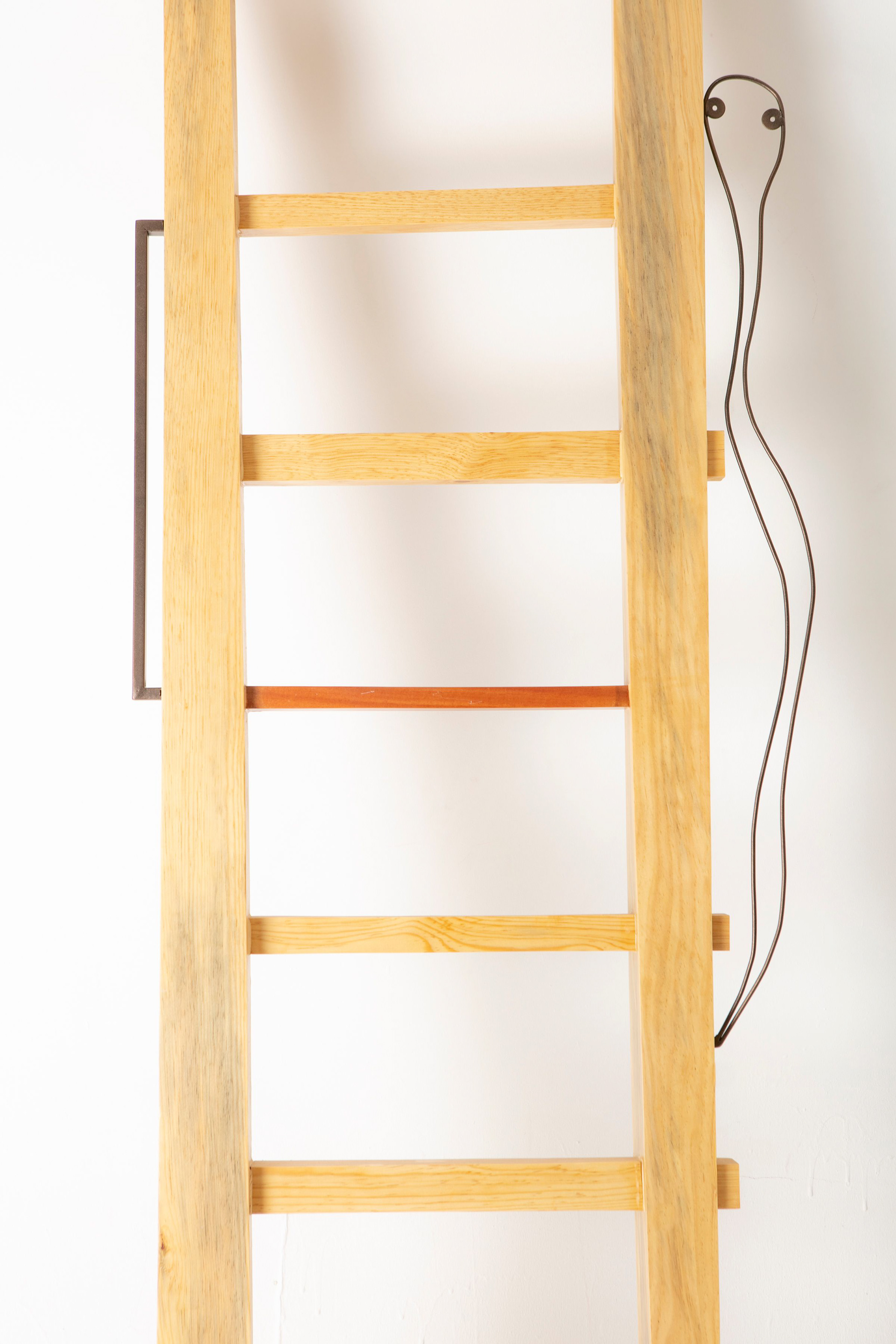 UN PELDAÑO FRÁGIL (2022) Escalera de madera de pino con detalles en herrería esmaltada / 2.14mx40cm