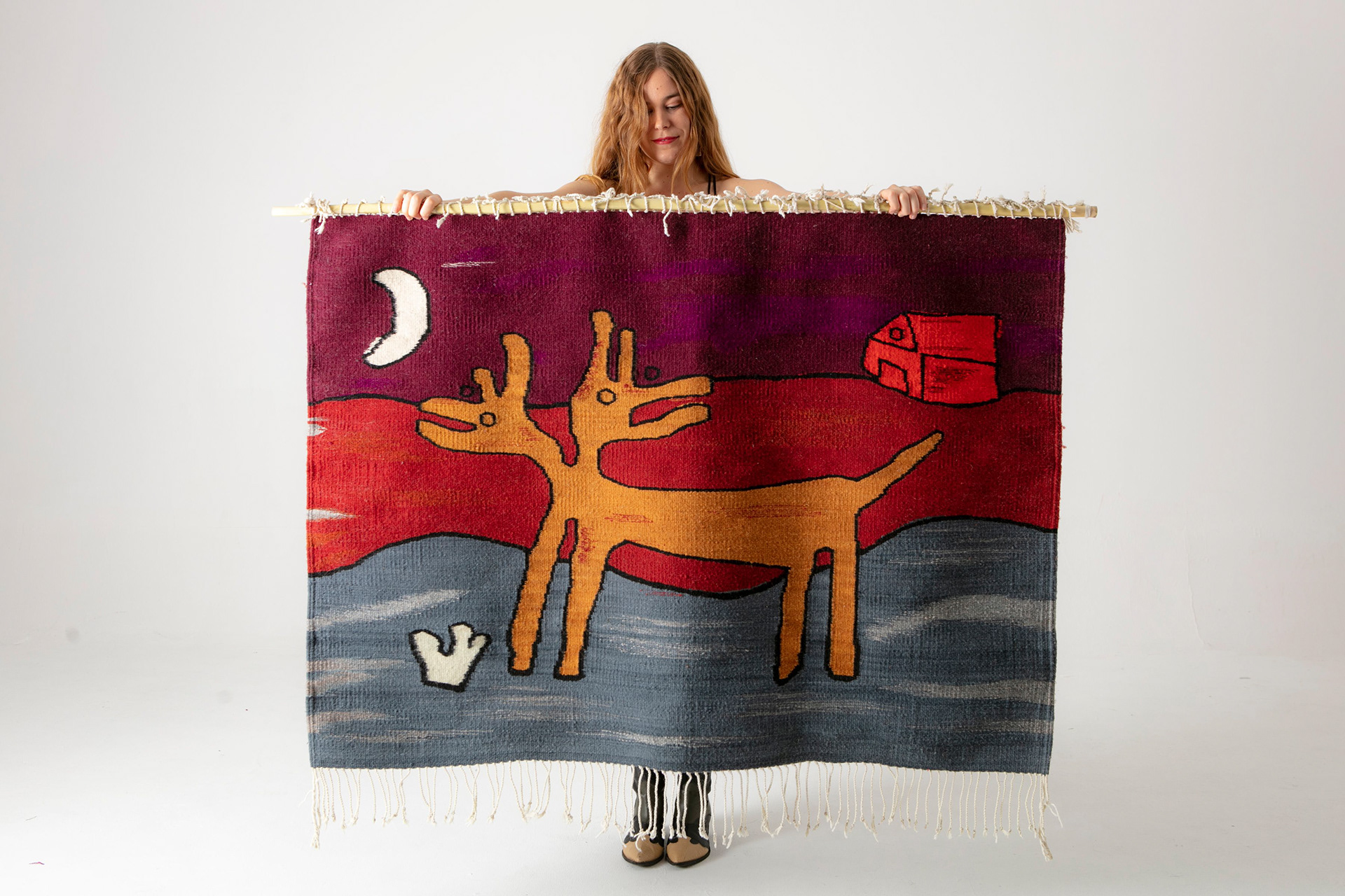 EL PERRO CAZA EL PERRO ES CASA (2022) Gobelino de lana teñida con tintes naturales tejido en telar de pedal / 140x100cm