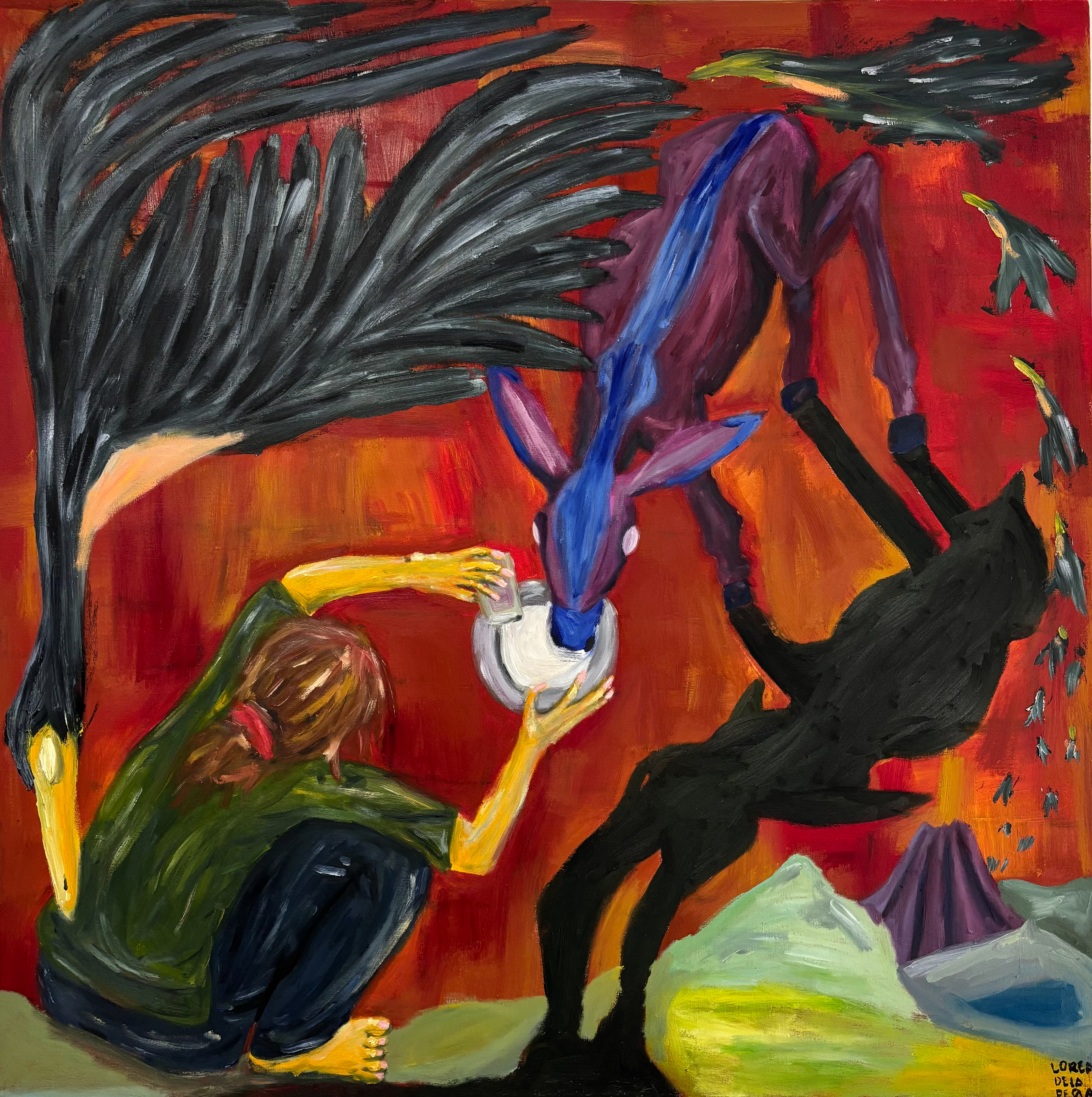 SOSTENIENDO UN AVE (2025) / Óleo / 50x50cm